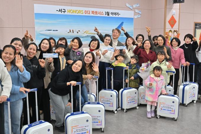 [È£³²µµ¹Î½Å¹® = ÀÓÀ±Áø ±âÀÚ] ±¤ÁÖ±¤¿ª½Ã ¼­±¸ °í¾× ±âºÎÀÚ ¸ðÀÓ ¡®¼­±¸¾Æ³Ê½º¡¯°¡ Áö³­ÇØ¿¡ ÀÌ¾î ¿ÃÇØµµ °áÈ¥À̹ÎÀÚ °¡Á¤ÀÇ ¸ð±¹ ¹æ¹® Áö¿øÀ» À§ÇÑ ¡®¾ö¸¶³ª¶ó ¿Ü°«Áý ¹æ¹®¡¯ »ç¾÷À» ÃßÁøÇÑ´Ù. ¼­±¸¾Æ³Ê½º´Â À̹ø »ç¾÷À» À§ÇØ 3300¸¸¿øÀ» ÈÄ¿øÇßÀ¸¸ç À̵¿°Å¸®¿Í Ç×°ø·á¸¦ °í·ÁÇØ 1Àδç ÃÖ´ë 100¸¸¿ø±îÁö Áö¿øÇÑ´Ù. À̹ø »ç¾÷Àº ¼­±¸ °ü³» °áÈ¥À̹ÎÀÚ °¡Á¤ Áß ±âÁØÁßÀ§¼Òµæ 100% ÀÌÇϸ鼭 ÃÖ±Ù 2³â ÀÌ»ó ¸ð±¹ ¹æ¹® ±â·ÏÀÌ ¾ø´Â ¼¼´ë¸¦ ´ë»óÀ¸·Î ÃßÁøµÆÀ¸¸ç ¼ö±â °ø¸ð¸¦ ÅëÇØ 16°¡Á¤, 53¸íÀ» ¼±Á¤Çß´Ù.
