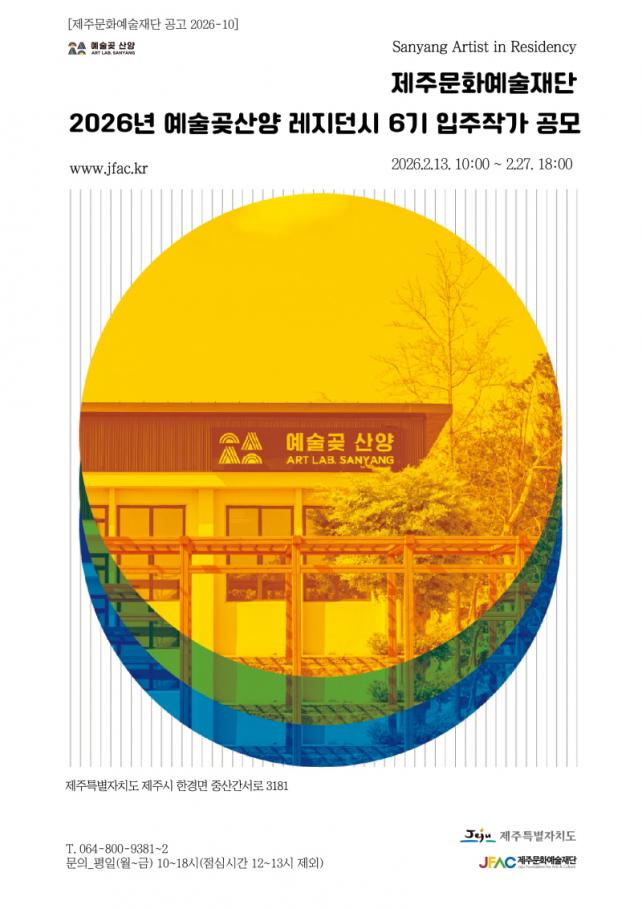 [È£³²µµ¹Î½Å¹® = ÀÓÀ±Áø ±âÀÚ] Á¦ÁÖ¹®È­¿¹¼úÀç´Ü(ÀÌ»çÀå ±è¼®À±, ÀÌÇÏ Àç´Ü)Àº ¿¹¼ú°ù»ê¾ç ·¹Áö´ø½Ã 6±â ÀÔÁÖÀÛ°¡¸¦ 2026³â 2¿ù 16ÀϺÎÅÍ 27ÀϱîÁö ¸ðÁýÇÑ´Ù.