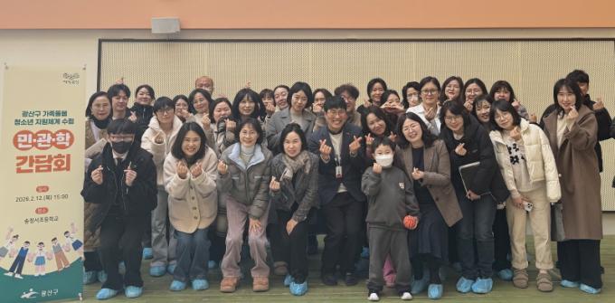 »çÁø ¼³¸í=±¤»ê±¸°¡ Áö³­ 12ÀÏ ¼ÛÁ¤¼­ÃʵîÇб³¿¡¼­ °¡Á· µ¹º½ û¼Ò³â Á¶±â ¹ß±¼°ú ÃÎÃÎÇÑ Áö¿ø ¿¬°è¸¦ À§ÇÑ ¡®¹Î‧°ü‧ÇÐ °£´ãȸ¡¯¸¦ ÁøÇàÇß´Ù.