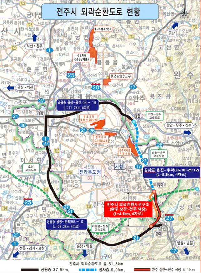 ÇØ´ç ±¸°£Àº ÀüÁÖ¡¤¿ÏÁÖ¸¦ ÀÕ´Â ¿Ü°û¼øÈ¯µµ·ÎÀÇ ¸¶Áö¸· ¿¬°áÃàÀ¸·Î, ¿Ï°ø ½Ã ÀüÁÖ ¿Ü°û¼øÈ¯µµ·Î¸Á(ÃÑ 51.5km)ÀÌ ºñ·Î¼Ò ¿Ï¼ºµÈ´Ù. ¿Ü°û¼øÈ¯µµ·Î´Â µµ½É ±³Åë·®À» ¿Ü°ûÀ¸·Î ºÐ»êÇØ ±³Åë È¥ÀâÀ» ÇØ¼ÒÇϰí, ÀÎÁ¢ ½Ã¡¤±º °£ Á¢±Ù¼ºÀ» ³ôÀÌ´Â ÇÙ½É ±³Åë ÀÎÇÁ¶ó·Î Æò°¡¹Þ°í ÀÖ´Ù.