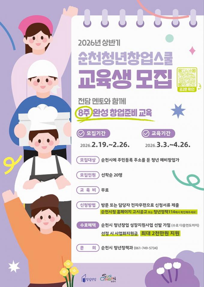 ¼øÃµÃ»³ââ¾÷½ºÄðÀº Àü´ã ¸àÅä¿Í ÇÔ²²ÇÏ´Â 8ÁÖ ¿Ï¼º â¾÷Áغñ ±³À°°úÁ¤À¸·Î â¾÷¿¬´ç(¼øÃµ½Ã ¿ªÀü±¤Àå3±æ 54, »ýźñÁî´Ï½º¼¾ÅÍ)¿¡¼ ÁøÇàµÈ´Ù. ±³À°±â°£Àº 3¿ù 3ÀϺÎÅÍ 4¿ù 28ÀϱîÁö´Ù.