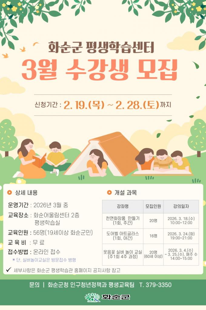 È­¼ø±º, 2026³â 3¿ù Æò»ýÇнÀ¼¾ÅÍ ÇÁ·Î±×·¥ Âü¿©ÀÚ ¸ðÁý