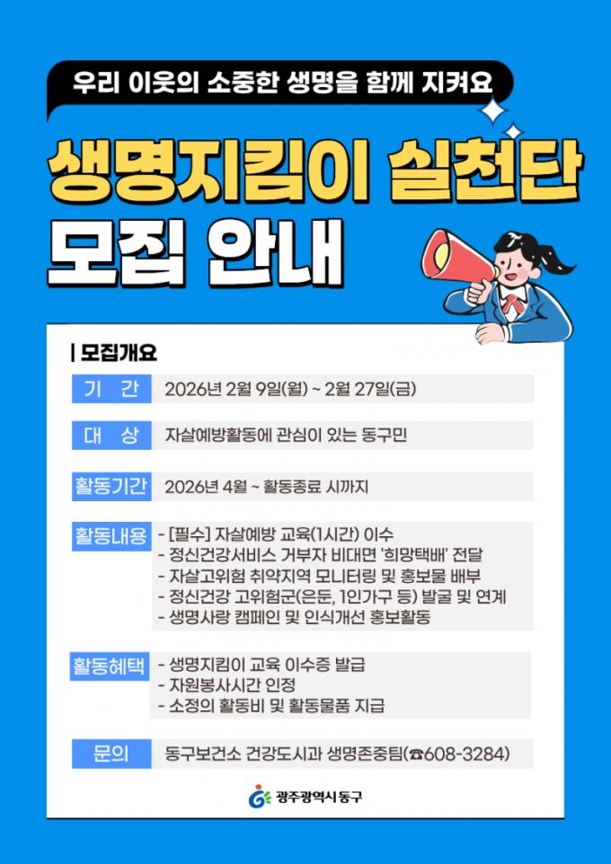 ¡®»ý¸íÁöÅ´ÀÌ ½Çõ´Ü¡¯ Âü¿©¸¦ Èñ¸ÁÇÏ´Â ÁÖ¹ÎÀº µ¿±¸º¸°Ç¼Ò »ý¸íÁ¸Á߯À(¢Ï062-608-3284)À¸·Î ¹®ÀÇÇÏ¸é µÈ´Ù.