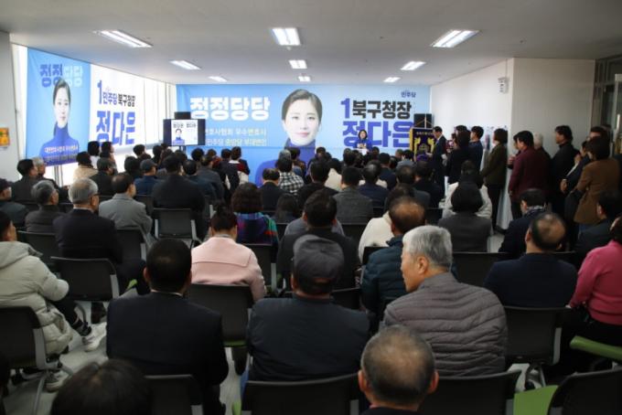 Á¤´ÙÀº ºÏ±¸Ã»Àå ¿¹ºñÈ帴 ¡°°³¼Ò½Ä¿¡ Âü¼®ÇØÁֽЏðµç ºÐµéÀÇ ¹ÏÀ½°ú »ç¶ûÀ» °¡½¿¿¡ ´ã°í ¿ë±âÀÖ´Â ¼±Åÿ¡ ¹Ýµå½Ã ½Â¸®·Î º¸´äÇϰڴ١±¸ç ¡°±¤ÁÖÆ¯º°½Ã ´ëÇ¥µµ½Ã ºÏ±¸¿¡ °¡Àå Àû±ØÀûÀÎ º¯È¸¦ À̲ø¾î ³»°Ú´Ù¡±°í ¸»Çß´Ù.