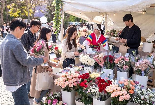 ¶ÇÇÑ °³¸·½Ä¿¡¼­´Â °ü¶÷°´À» ´ë»óÀ¸·Î Àå¹Ì ¹«·á ³ª´® Çà»ç¸¦ ÁøÇàÇØ ÃàÁ¦ ºÐÀ§±â¸¦ ÇÑÃþ ²ø¾î¿Ã·È´Ù. Çà»çÀåÀ» ãÀº ¹æ¹®°´µé¿¡°Ô Àå¹Ì ÇÑ ¼ÛÀ̸¦ Àü´ÞÇÏ¸ç °­Áø Àå¹ÌÀÇ ¾Æ¸§´Ù¿ò°ú Çâ±â¸¦ Á÷Á¢ üÇèÇÒ ¼ö ÀÖµµ·Ï Çß°í, ÀÚ¿¬½º·´°Ô Á÷°Å·¡ ÆÇ¸Å ºÎ½º·Î °ü½ÉÀÌ À̾îÁö´Â È¿°úµµ ³ªÅ¸³µ´Ù.