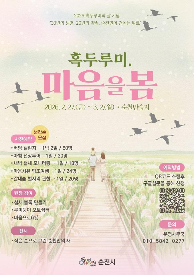 ÅäÅ© ÄܼƮ¿Í ÇÔ²² ¼øÃµ¸¸ÀÇ ÀÚ¿¬À» ¿ÂÀüÈ÷ üÇèÇÒ ¼ö ÀÖ´Â Ä¡À¯¡¤Å½Á¶ ÇÁ·Î±×·¥µµ ¼øÃµ¸¸ ÀÏ¿ø¿¡¼ ¿î¿µµÈ´Ù. »çÀü¿¹¾à ÇÁ·Î±×·¥À¸·Î ¡â»õº® ö»õ ¸ð´ÏÅ͸µ ¡â¼±»óÅõ¾î ¡â1¹Ú2ÀÏ ¹öµù 縰Áö ¡â°¥´ë½£ º°ÀÚ¸® °üÂû µîÀÌ ¸¶·ÃµÆÀ¸¸ç, ¼øÃµ¸¸½ÀÁö ´©¸®Áý¿¡¼ ¿¹¾àÇÒ ¼ö ÀÖ´Ù. ÇöÀå Âü¿© ÇÁ·Î±×·¥À¸·Î´Â ¡â¸¶À½À¸·Î(ÖØ) ¡âö»õ ºí·Ï ¸¸µé±â ¡â·ç¹Ì¡¤¶×ÀÌ Æ÷Åä½°ÅÍ µî °¡Á·ÀÌ ÇÔ²² Áñ±æ ¼ö ÀÖ´Â Âü¿©Çü ÄÜÅÙÃ÷°¡ ÁغñµÈ´Ù. »çÀü¿¹¾à ÇÁ·Î±×·¥ Âü¿©ÀÚ¿¡°Ô´Â ¼øÃµ»ç¶û»óǰ±ÇÀ» Á¦°øÇØ Áö¿ª°æÁ¦ Ȱ¼ºÈ¿¡ ±â¿©ÇÒ °èȹÀÌ´Ù.