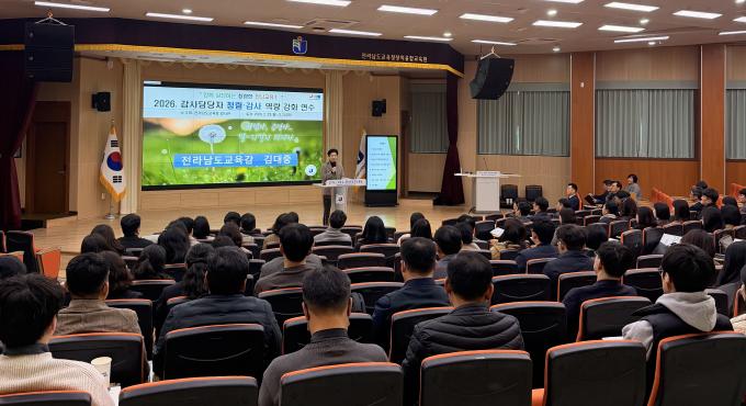 ¿¬¼ö ù³¯¿¡´Â ¡ã 2026³â °¨»ç¡¤Ã»·ÅÁ¤Ã¥ ±âº» ¹æÇâ ¡ã ÀÚü °¨»ç ÃßÁø ¹æÇâ ¡ãÁ¾ÇÕû·Åµµ Æò°¡ °ü·Ã ¾È³» µî Àü³²±³À°Ã»ÀÇ ¿ÃÇØ û·Å¡¤°¨»ç Á¤Ã¥ Àü¹ÝÀ» °øÀ¯ÇÏ´Â ÇÁ·Î±×·¥ÀÌ ÁøÇàµÆ´Ù. À̾î ÇÐ»ç ºÐ¾ß °¨»ç »ç·Ê¸¦ Áß½ÉÀ¸·Î ÇÑ ½Ç¹« °ÀÇ¿Í Á÷Àå ³» °¥µî Á¶Á¤ ¹× »ó´ã »ç·Ê ±³À°ÀÌ ¸¶·ÃµÅ °¨»ç ¾÷¹« ¼öÇà °úÁ¤¿¡¼ÀÇ ¼ÒÅë ¿ª·®À» ³ô¿´´Ù.