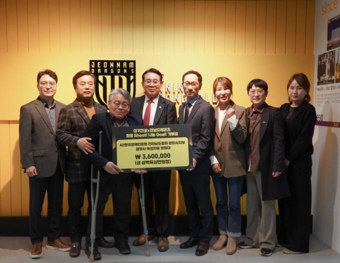 ±âºÎ Âü¿© ±â¾÷ÀÎ ´ë±â°Ç¼³Àº 2025½ÃÁð Àü³²µå·¡°ïÁî°¡ Ȩ°æ±â¿¡¼ ÃÑ 36µæÁ¡À» ±â·ÏÇÔ¿¡ µû¶ó 360¸¸ ¿øÀÇ ±âºÎ±ÝÀ» Àü´ÞÇÒ ¿¹Á¤À̸ç, À̸¦ Æ÷ÇÔÇØ 2024³âºÎÅÍ ÇöÀç±îÁö ´©Àû 530¸¸ ¿øÀÇ ±âºÎ±ÝÀ» Á¶¼ºÇϸç Áö¿ª»çȸ »ó»ý¿¡ ÈûÀ» º¸Å°í ÀÖ´Ù.