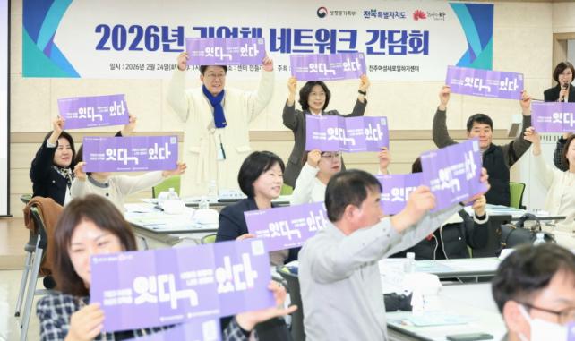 ÀüÁÖ½Ã¿Í ÀüÁÖ¿©¼ºÀη°³¹ß¼¾ÅÍ(°üÀå ¾çÈñ¿Á)´Â 24ÀÏ ÀüÁÖ¿©¼ºÀη°³¹ß¼¾ÅÍ 4Ãþ ¹Îµé·¹È¦¿¡¼ 50°³ ±â¾÷ÀÇ ´ëÇ¥ ¹× Àλç´ã´çÀÚ°¡ Âü¼®ÇÑ °¡¿îµ¥ ¡®2026³â ÀüÁÖ¿©¼ºÀη°³¹ß¼¾ÅÍ Ãë¾÷ ¿¬°è±â¾÷ °£´ãȸ¡¯¸¦ °³ÃÖÇß´Ù.