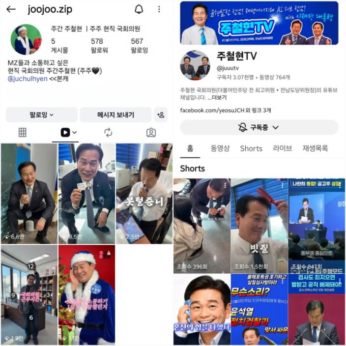¿ÞÂÊÀº ÁÖöÇö ÀÇ¿øÀÌ ¿î¿µÇÏ´Â ¡®MZ ¼ÒÅ롯 ÀνºÅ¸±×·¥ È­¸é, ¿À¸¥ÂÊÀº À¯Æ©ºê ¡®ÁÖöÇöTV¡¯ ä³Î È­¸éÀÌ´Ù. ÃÖ±Ù ¡®MZ ¼ÒÅ롯 ÀνºÅ¸±×·¥¿¡ ¿Ã¶ó¿Â ¿µ»óµéÀÌ Á¶È¸¼ö¸¦ ºü¸£°Ô ²ø¾î¿Ã¸®¸ç È®»ê¼¼¸¦ º¸À̰í ÀÖ´Ù.