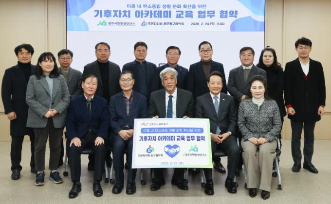 [È£³²µµ¹Î½Å¹® = ÀÓÀ±Áø ±âÀÚ] ±¤ÁÖ µ¿±¸´Â Áö³­ 24ÀÏ ÁÖ¹ÎÀÚġȸ µ¿±¸ÇùÀÇȸ, (»ç)±¤ÁֽùÎȯ°æ¿¬±¸¼Ò¿Í ±âÈÄÀ§±â ´ëÀÀ ¿ª·® °­È­¸¦ À§ÇÑ ¾÷¹«Çù¾àÀ» ü°áÇϰí, °ü³» 13°³ µ¿À» ´ë»óÀ¸·Î ¡®±âÈÄÀÚÄ¡ ¾ÆÄ«µ¥¹Ì¡¯¸¦ ¿î¿µÇß´Ù°í ¹àÇû´Ù.