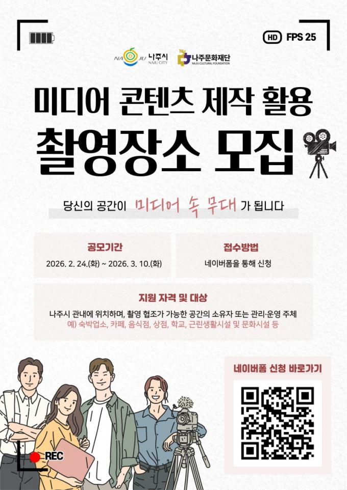 ³ªÁÖ¹®È­Àç´ÜÀº Áö¿ª ÀÚ¿øÀÇ È¿°úÀûÀÎ È«º¸¿Í ¼Ò»ó°øÀÎ Áö¿øÀ» À§ÇØ ¡®¹Ìµð¾î ÄÜÅÙÃ÷ ÃÔ¿µ Àå¼Ò¡¯¸¦ ¿À´Â 3¿ù 10ÀϱîÁö °ø°³ ¸ðÁýÇÑ´Ù°í 26ÀÏ ¹àÇû´Ù.