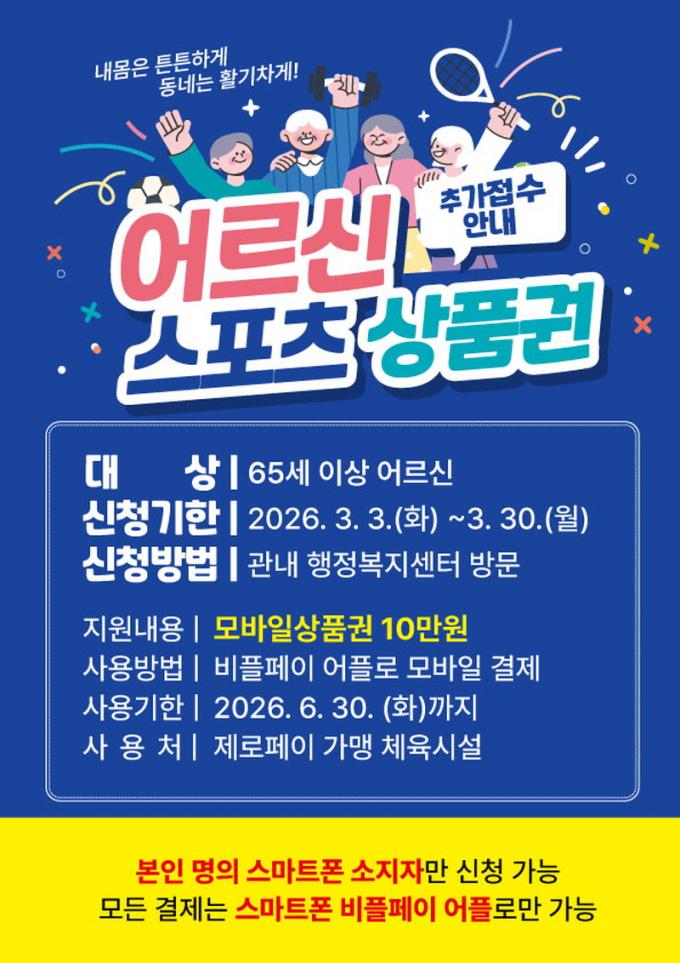 ½ÅûÀº °ü³» µ¿ ÇàÁ¤º¹Áö¼¾Å͸¦ ¹æ¹®ÇØ ¼­¸éÀ¸·Î Á¢¼öÇÏ¸é µÇ¸ç, ¼±Á¤ÀÚ´Â »óǰ±Ç ¼ö·É ÈÄ 2026³â 6¿ù 30ÀϱîÁö »ç¿ëÇÒ ¼ö ÀÖ´Ù.