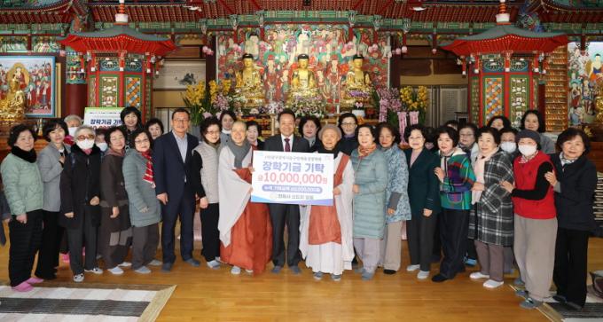 ¸í½Å ½º´ÔÀº ¡°ÇлýµéÀÌ ²ÞÀ» °®°í ¹è¿ò¿¡ Àü³äÇÏ±æ ¹Ù¶ó´Â ¸¶À½À¸·Î ¸Å³â ÀåÇбÝÀ» ±âºÎÇϰí ÀÖ´Ù¡±¸ç ¡°¿ì¸® Áö¿ª ÇлýµéÀÌ »çȸ¿¡ ²À ÇÊ¿äÇÑ ÀÎÀç·Î ¼ºÀåÇÏ±æ ¹Ù¶õ´Ù¡±°í ¸»Çß´Ù.
