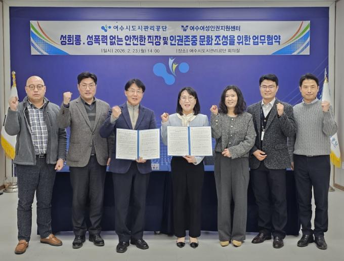 ¼Ûº´±¸ ÀÌ»çÀåÀº ¡°¿ì¸® °ø´ÜÀº ÀÓÁ÷¿ø ´©±¸³ª Á¸Áß¹Þ´Â ÀÏÅÍ, ½Ã¹Î ´©±¸³ª ¾ÈÀüÇÏ°Ô ÀÌ¿ëÇÒ ¼ö ÀÖ´Â °ø°ø ȯ°æÀ» Á¶¼ºÇϱâ À§ÇØ ¡®½Ã¹Î Áß½ÉÀÇ Àαǰ濵 ½Çõ¡¯¿¡ Èû¾²°í ÀÖ´Ù¡±¸ç, ¡°À̹ø ¶æ±íÀº Çù¾àÀ» °è±â·Î Àü¹®±â°ü ¹× ½Ã¹Î°ú ±»°ÇÈ÷ Çù·ÂÇÏ¿©, ¿©¼ö Áö¿ª»çȸ Àü¹Ý¿¡ ¾ç¼ºÆòµî°ú À뱂 Á¸Áß ¹®È°¡ È®»êµÇ±â¸¦ ¹Ù¶õ´Ù¡±°í °Á¶Çß´Ù.