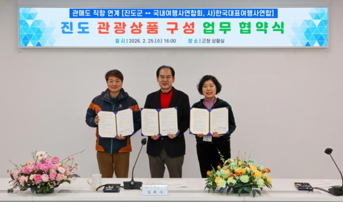 Áøµµ±ºÀº Áö³­ 25ÀÏ¿¡ Áøµµ±ºÃ»¿¡¼­ ±¹³»¿©Çà»ç¿¬ÇÕȸ, Çѱ¹´ëÇ¥¿©Çà»ç¿¬ÇÕ°ú ÇÔ²² ¡®°ü¸Åµµ Á÷Ç× ¿¬°è Áøµµ °ü±¤»óǰ ±¸¼º¡¯À» À§ÇÑ ¾÷¹«Çù¾à(MOU)À» ü°áÇß´Ù.