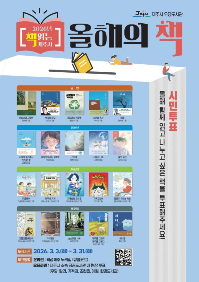¿Â¶óÀÎ ÅõÇ¥´Â Ã¥ ¼¶, Á¦ÁÖ ´©¸®Áý(http://woodang.jejusi.go.kr)¿¡¼ Á¦Áֽà ¿ÃÇØÀÇ Ã¥ ⇨ ¿ÃÇØÀÇ Ã¥ ÅõÇ¥ ¸Þ´º¸¦ ÅëÇØ Âü¿©ÇÒ ¼ö ÀÖ´Ù. ¿ÀÇÁ¶óÀÎ ÅõÇ¥´Â Á¦Áֽà ¼Ò¼Ó 6°³ °ø°øµµ¼°ü(¿ì´ç, ޶ó, ±âÀû, Á¶ÃµÀ¾, ¾Ö¿ù, ÇѰ浵¼°ü)¿¡¼ ÇöÀå ÅõÇ¥·Î ÁøÇàµÈ´Ù.