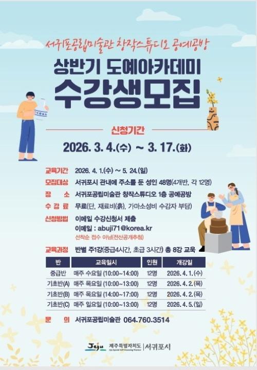 [È£³²µµ¹Î½Å¹® = ÀÓÀ±Áø ±âÀÚ] ¼­±ÍÆ÷°ø¸³¹Ì¼ú°üÀº Áö¿ªÁÖ¹ÎÀÇ ¿©°¡ ¼±¿ëÀÇ ÆøÀ» ³ÐÈ÷°í µµÀÚ±â üÇèÀÇ ±âȸ È®´ë¸¦ À§ÇØ 2026³â »ó¹Ý±â °ø¿¹°ø¹æ µµ¿¹¾ÆÄ«µ¥¹Ì¸¦ ¿î¿µÇÑ´Ù.