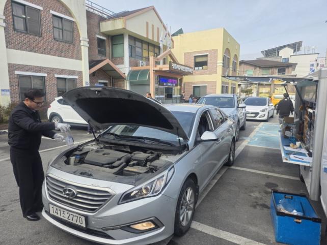 À̳¯ º¹Áö°ü ÁÖÂ÷Àå¿¡ ²Ù·ÁÁø ÇöÀå Á¡°Ë¹ÝÀº Â÷·®À» ÀÏÀÏÀÌ »ìÇÇ¸ç ¿£Áø¿ÀÀϰú °¢Á¾ ¿ÀÀÏ·ùÀÇ »óŸ¦ ²Ä²ÄÈ÷ Á¡°ËÇß´Ù. ¶ÇÇÑ ºê·¹ÀÌÅ©¿Í ŸÀÌ¾î ¸¶¸ð »óŸ¦ ºñ·ÔÇØ ¹èÅ͸®, ³Ã°¢¼ö, ¿ÍÀÌÆÛ, Àü±¸·ù µî Â÷·® ±âº» ¾ÈÀü¿¡ ÇʼöÀûÀÎ Ç׸ñµéÀ» ¼¼¹ÐÇÏ°Ô Áø´ÜÇÏ°í ³°Àº ¼Ò¸ð¼º ºÎǰÀ» ±× ÀÚ¸®¿¡¼­ ¹«»óÀ¸·Î ±³Ã¼ÇØ ÁÖ¾î Âü¿©ÀÚµéÀÇ Å« È£ÀÀÀ» ¾ò¾ú´Ù.