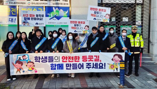 À̳¯ Çà»ç¿¡´Â ±º»ê°æÂû¼¿Í ±º»ê±³À°Áö¿øÃ», ±º»êÁß¾ÓÃʵîÇб³ °ü°èÀÚ µî 60¿© ¸íÀÌ Âü¿©ÇØ ¡°ÇлýµéÀÇ ¾ÈÀüÇÑ µî±·±æ ÇÔ²² ¸¸µé¾î ÁÖ¼¼¿ä!¡±¶ó´Â ¹®±¸°¡ ´ã±ä Çö¼ö¸·°ú È«º¸ Àü´ÜÀ» Ȱ¿ëÇØ »óÀΰú ½Ã¹ÎµéÀÇ ÀÚ¹ßÀûÀÎ ÇùÁ¶¸¦ ¿äûÇß´Ù.