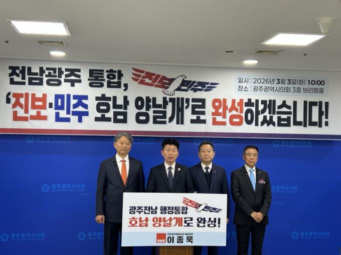 Áøº¸´ç Àü³²µµ´ç°ú ±¤ÁֽôçÀº Áøº¸¿Í ¹ÎÁÖ ¾ç³¯°³Á¤Ä¡·Î Àü³²±¤ÁÖ ÅëÇÕÀ» ¿Ï¼ºÇϰí È£³²¿¡ ¹ø¿µÀÇ »õ ½Ã´ë¸¦ ¿¾î°¡°Ú´Ù´Â Æ÷ºÎ¸¦ ¹àÇû´Ù.