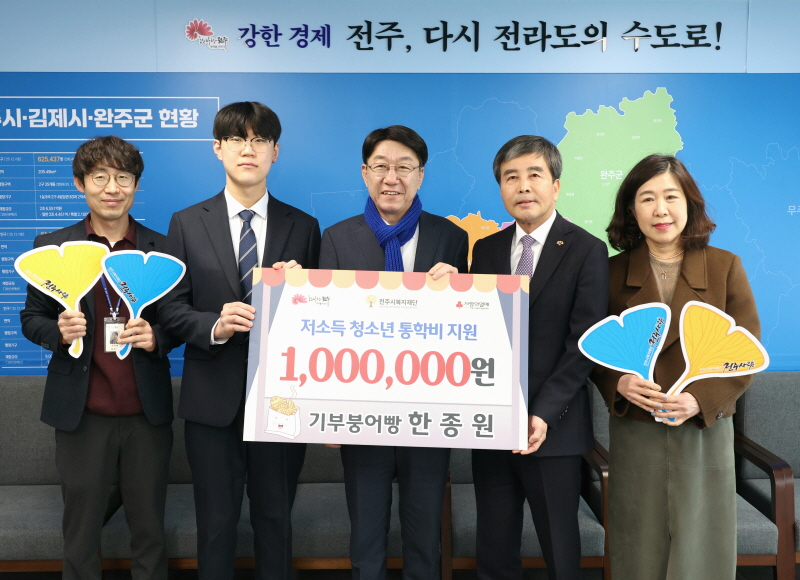 ÀüÁֽú¹ÁöÀç´Ü(ÀÌ»çÀå À±¹æ¼®)Àº 3ÀÏ ÀüÁֽà ÅÂÆòµ¿¿¡ °ÅÁÖÇÏ´Â ÇÑÁ¾¿ø ¾¾(22¼¼)°¡ Àú¼Òµæ°¡Á¤ û¼Ò³â ÅëÇкñ Áö¿øÀ» À§ÇÑ ¼º±Ý 100¸¸ ¿øÀ» Àü´ÞÇß´Ù°í ¹àÇû´Ù.
