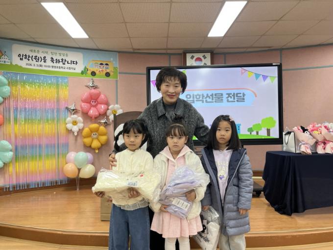 ÀÔÇÐ Ãʱâ ÇÊ¿äÇÑ ¹°Ç°À¸·Î ¼±¹°À» ±¸¼ºÇßÀ¸¸ç, À̳¯ Àü´Þ½Ä¿¡´Â ¾çÀºÈñ‧±è¿ë°ü °øµ¿À§¿øÀåÀÌ ½ÅÀÔ»ý ÇÑ ¸í ÇÑ ¸í¿¡°Ô Á÷Á¢ ¼±¹°À» °Ç³×¸ç µû¶æÇÑ ÃàÇÏÀÇ Àλ縦 ÀüÇß´Ù. ¾ÆÀ̵éÀº ÀÚ½ÅÀÇ À̸§ÀÌ ÀûÈù ²Ù·¯¹Ì¸¦ ¹Þ¾Æ µé°í ¼öÁÝÁö¸¸ ¹Ý°¡¿î Ç¥Á¤À» Áö¾ú°í, Çкθðµéµµ ¡°Å« ÈûÀÌ µÈ´Ù¡±¸ç °¨»çÀÇ ¶æÀ» ÀüÇß´Ù.