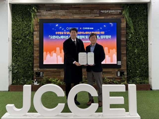 [È£³²µµ¹Î½Å¹® = ÀÓÀ±Áø ±âÀÚ] Á¦ÁÖâÁ¶°æÁ¦Çõ½Å¼¾ÅÍ(´ëÇ¥ÀÌ»ç À̺´¼±, ÀÌÇÏ Á¦ÁÖ¼¾ÅÍ)´Â ÁÖ½Äȸ»ç DRBµ¿ÀÏ(¹Ì·¡¼ºÀåºÎ¹®Àå ±èÁؼº, ÀÌÇÏ DRBµ¿ÀÏ)°ú ¿ìÁÖÇ×°ø ¹× µöÅ×Å© »ê¾÷ ¿ÀÇÂÀ̳뺣ÀÌ¼Ç È°¼ºÈ­¸¦ À§ÇÑ ¡¸¿ÀÇÂÀ̳뺣ÀÌ¼Ç »ç¾÷ °øµ¿Çù·Â ¹× ÅõÀÚ¿¬°è¡¹ ¾÷¹«Çù¾àÀ» Áö³­´Þ 25ÀÏ Ã¼°áÇß´Ù.