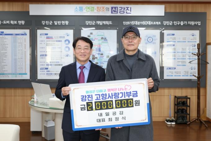 °Áø±ºÀº Áö³ 4ÀÏ ÃÖÁ¤½Ä ´ëÇ¥°¡ °Áø °íÇâ»ç¶û±âºÎ±Ý 2¹é¸¸ ¿øÀ» ±âŹÇß´Ù°í ¹àÇû´Ù.