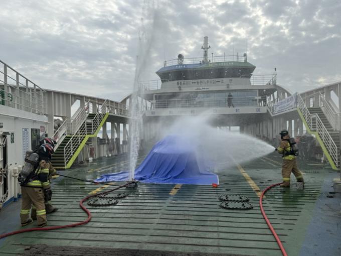 ƯÈ÷ Â÷·® ÇϺÎÁÖ¼ö°üâ°ú °üÅëÇü ¹æ»çÀåÄ¡(µå¸±·£½º) µî Àü±âÂ÷ È­Àç ´ëÀÀ Àü¹® Àåºñ¸¦ Ȱ¿ëÇÑ Áø¾Ð ½Ã¿¬À» ÅëÇØ ½ÇÀü ´ëÀÀ´É·ÂÀ» Á¡°ËÇß´Ù. ¶ÇÇÑ ÇØ¾ç°æÂû ±¸Á¶Á¤ÀÌ ÅõÀԵǾî ÇØ»ó Åð¼±ÀÚ ±¸Á¶ ÈÆ·ÃÀ» ½Ç½ÃÇÏ´Â µî °ü°è±â°ü °£ ¿ªÇÒ ºÐ´ã°ú Çù·Âü°è¸¦ Á¾ÇÕÀûÀ¸·Î Á¡°ËÇÏ´Â ½Ã°£À» °¡Á³´Ù.