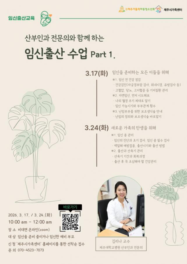 ½ÅûÀº 3¿ù 13ÀϱîÁö Á¦Áֽð¡Á·¼¾ÅÍ ´©¸®Áý(http://jeju.familynet.or.kr)À» ÅëÇØ ¼±Âø¼ø Á¢¼öÇÏ¸é µÇ°í, ±âŸ ÀÚ¼¼ÇÑ »çÇ×Àº Á¦Áֽð¡Á·¼¾ÅÍ °¡Á·±³À°ÆÀ(¢Ï070-4523-7073)À¸·Î ¹®ÀÇÇÏ¸é µÈ´Ù. Á¦Áֽð¡Á·¼¾ÅÍ´Â ¿À´Â 3¿ù 31ÀÏ(È) ¡®ÀÓ½ÅÃâ»ê¼ö¾÷ part 2. ³ª¸¦ À§ÇÑ Çâ±â·Î¿î ¸¶À½Ã¬±è¡¯ ÇÁ·Î±×·¥µµ ¿î¿µÇÒ ¿¹Á¤À̸ç, ÇØ´ç °Áµµ ¼±Âø¼ø 15¸í¿¡ ÇÑÇØ ¹«·á·Î ÁøÇàµÈ´Ù.