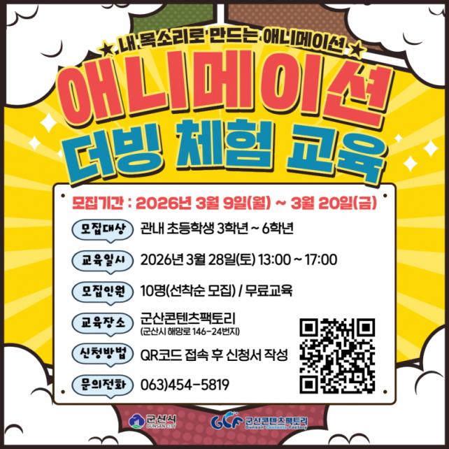 [È£³²µµ¹Î½Å¹® = ÀÓÀ±Áø ±âÀÚ] ±º»êÄÜÅÙÃ÷ÆÑÅ丮°¡ ÃʵîÇлýÀ» ´ë»óÀ¸·Î ¡®¾Ö´Ï¸ÞÀÌ¼Ç ´õºù üÇ衯 ±³À°À» 3¿ù 28ÀÏ ¿î¿µÇϸç, Âü°¡ÀÚ 10¸íÀ» ¼±Âø¼ø ¸ðÁýÇÑ´Ù.