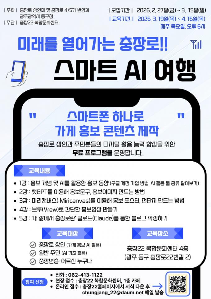 [È£³²µµ¹Î½Å¹® = ÀÓÀ±Áø ±âÀÚ] ±¤Áֽà µ¿±¸ ÃæÀå22 ¹®È­»ç¾÷´ÜÀº ÃæÀå·Î »óÀÎȸ, ÃæÀå·Î4¡¤5°¡¹ø¿µÈ¸¿Í Çù¾÷ÇØ ¡®¹Ì·¡¸¦ ¿­¾î°¡´Â ÃæÀå·Î!! ½º¸¶Æ® ÀΰøÁö´É(AI) ¿©Ç࡯ ±³À° ÇÁ·Î±×·¥À» °³¼³¡¤¿î¿µÇÑ´Ù°í ¹àÇû´Ù.