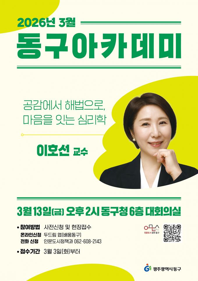 µ¿±¸ ¾ÆÄ«µ¥¹Ì´Â ¿¬¸»±îÁö ¸Å¿ù µÑ° ÁÖ ±Ý¿äÀÏ¿¡ ÁøÇàµÇ¸ç, ¼¼ºÎ ÀÏÁ¤°ú °ÀÇ ³»¿ëÀº µ¿±¸Ã» ´©¸®Áý°ú °ø½Ä SNS¸¦ ÅëÇØ È®ÀÎÇÒ ¼ö ÀÖ´Ù. Âü¿©¸¦ ¿øÇÏ´Â ÁÖ¹ÎÀº Àι®µµ½ÃÁ¤Ã¥°ú Æò»ýÇнÀÆÀ(¢Ï062-608-2143)À¸·Î ¹®ÀÇÇÏ¸é µÈ´Ù.