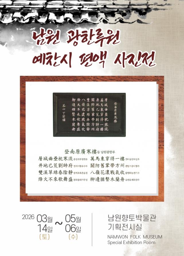 [È£³²µµ¹Î½Å¹® = ÀÓÀ±Áø ±âÀÚ] ³²¿øÇâÅä¹Ú¹°°ü(³²¿ø½Ã ¾ç¸²±æ 14-9)ÀÌ 2026³â º½À» ¸Â¾Æ ³²¿øÀÇ »ó¡ÀÌÀÚ º¸¹°ÀÎ ±¤ÇÑ·çÀÇ ¹®È­Àû °¡Ä¡¸¦ Á¶¸íÇϴ Ưº°ÇÑ Àü½Ã¸¦ ¼±º¸ÀδÙ.