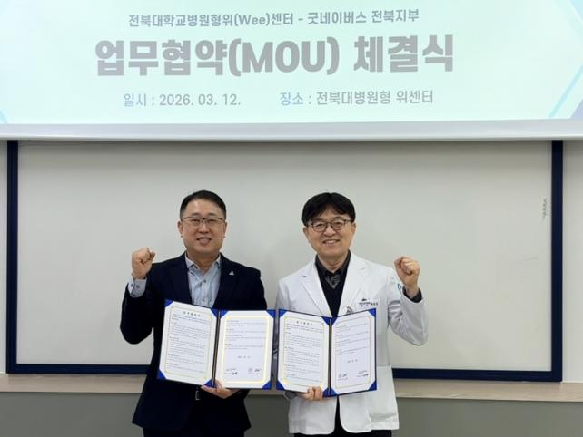 »çȸº¹Áö¹ýÀÎ ±Â³×À̹ö½º ÀüºÏÁöºÎ(ÁöºÎÀå ±è°æÈ¯)¿Í ÀüºÏ´ëÇб³º´¿øÇü À§(Wee)¼¾ÅÍ(¼¾ÅÍÀå ¹ÚÅ¿ø)´Â Áö¿ª»çȸ ¾Æµ¿ÀÇ º¸È£ ÁõÁø°ú »îÀÇ Áú Çâ»óÀ» ¸ñÇ¥·Î ¾÷¹«Çù¾à(MOU)À» ü°áÇÏ¿´´Ù. µÎ ±â°üÀº Çù¾àÀ» ÅëÇØ º¸È£°¡ ÇÊ¿äÇÑ ¾Æµ¿ÀÇ ¾ÈÀüÀ» È®º¸ÇÏ°í °Ç°ÇÑ ¼ºÀåÀ» Áö¿øÇϱâ À§ÇÑ ÅëÇÕÀû º¸È£Ã¼°è¸¦ ±¸ÃàÇÒ °èȹÀÌ´Ù.