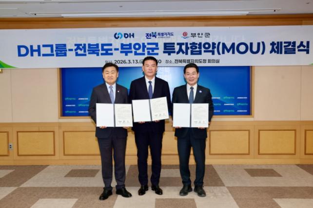 [È£³²µµ¹Î½Å¹® = ÀÓÀ±Áø ±âÀÚ] ºÎ¾È±ºÀº ÀüºÏƯº°ÀÚÄ¡µµ¿Í ÇÔ²² 13ÀÏ ÀüºÏƯº°ÀÚÄ¡µµÃ»¿¡¼­ ¢ßDH±×·ì°ú 1500¾ï¿ø ±Ô¸ðÀÇ ºÎ¾È Á¦3³ó°ø´ÜÁö ÅõÀÚÇù¾à(MOU)À» ü°áÇß´Ù°í ¹àÇû´Ù.