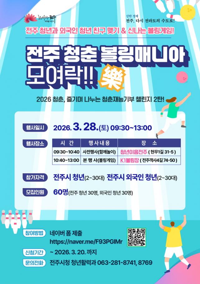 À̹ø Çà»ç´Â ¡®ÀüÁֽà ûÃá Àç´É±âºÎ 縰Áö¡¯ÀÇ µÎ ¹øÂ°·Î, ÀüÁֽà û³â»Ó¸¸ ¾Æ´Ï¶ó ÀüÁÖ¿¡ °ÅÁÖÇÏ´Â ¿Ü±¹ÀΠû³âµéÀÌ ÇÔ²² ¾î¿ì·¯Áö´Â ÈÇÕÀÇ ÀåÀ¸·Î ²Ù¸çÁú ¿¹Á¤ÀÌ´Ù. Âü°¡ÀÚµéÀº û³â °ÅÁ¡ °ø°£ÀÎ ¡®Ã»³âÀÌÀ½ÀüÁÖ¡¯¿¡¼ »çÀü ±³·ù ½Ã°£À» °¡Áø µÚ, Àα٠º¼¸µÀåÀ¸·Î À̵¿ÇØ º»°ÝÀûÀΠȰµ¿À» ÆîÄ¥ ¿¹Á¤ÀÌ´Ù.