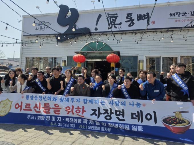 ±¤¾çÀ¾Ã»³âȸÀåÀº ¡°¾î¸£½Åµé²²¼­ ¸ÀÀÖ°Ô µå½Ã°í Áñ°Å¿öÇϽô ¸ð½ÀÀ» º¸¸ç Å« º¸¶÷À» ´À²¼´Ù¡±¸ç ¡°¾ÕÀ¸·Îµµ ¡®¹ßÀüÇÏ´Â ±¤¾çÀ¾, ÇÔ²²Çϴ û³âȸ¡¯¶ó´Â ½½·Î°Ç ¾Æ·¡ Áö¿ª ÁÖ¹ÎÀ» À§ÇÑ ºÀ»çȰµ¿À» ²ÙÁØÈ÷ À̾°Ú´Ù¡±°í ¸»Çß´Ù.