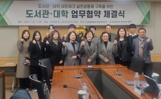 17ÀÏ Àü³²´ë¿¡ µû¸£¸é Àü³²´ëÇб³ »çȸ°úÇдëÇÐ ¹®ÇåÁ¤º¸Çаú´Â Áö³ 1¿ù 30ÀÏ »çȸ°úÇдëÇÐ 228È£ ȸÀǽǿ¡¼ ±¤ÁÖÀü³²Áö¿ª´ëÇеµ¼°üÇùÀÇȸ, ±¤ÁÖ±¤¿ª½Ã±³À°Ã»Áß¾Óµµ¼°ü, ±¤ÁÖ±¤¿ª½Ã¸³¹«µîµµ¼°ü, ±¤ÁÖ¿¬±¸¿ø AIÁ¤Ã¥¿¬±¸¼¾ÅÍ, ±¹¸³¾Æ½Ã¾Æ¹®ÈÀü´çÀç´Ü ¾î¸°ÀÌ»ç¾÷º»ºÎ¿Í ¡®µµ¼°ü-´ëÇÐ ³×Æ®¿öÅ© ÇùÀÇü¡¯ ±¸ÃàÀ» À§ÇÑ ¾÷¹«Çù¾àÀ» ü°áÇß´Ù.
