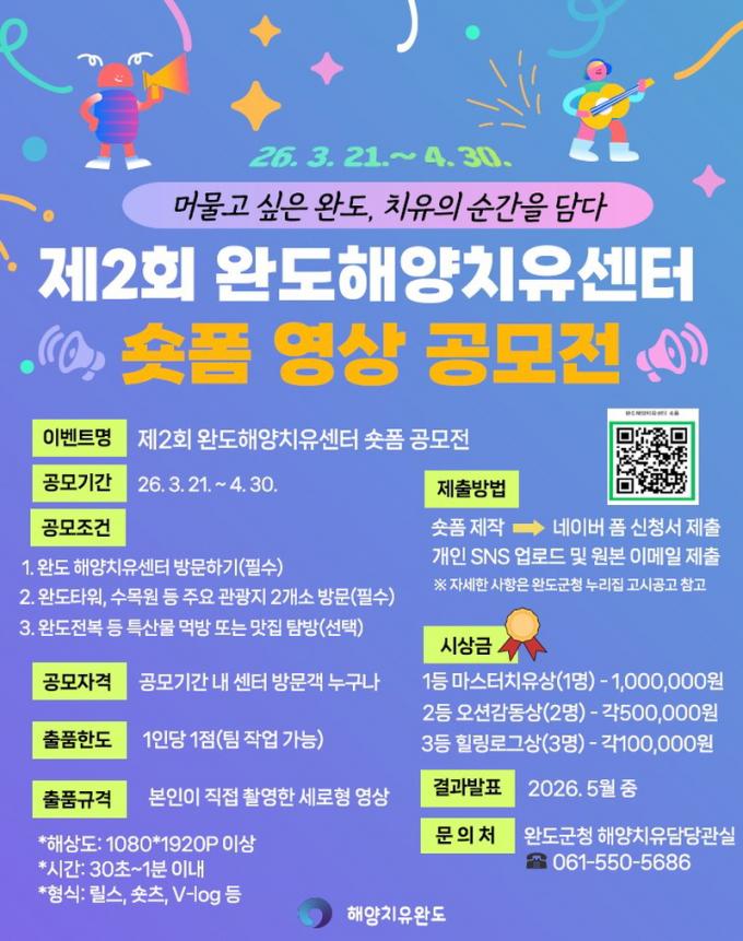 °ø¸ðÀü ±â°£Àº 3¿ù 21ÀϺÎÅÍ 4¿ù 30ÀϱîÁöÀ̸ç, ¿ÏµµÇؾçÄ¡À¯¼¾Å͸¦ ¹æ¹®ÇÏ¿© ÇØ¾çÄ¡À¯ ÇÁ·Î±×·¥À» üÇèÇÑ Ä¡À¯°´À̶ó¸é ´©±¸³ª Âü¿© °¡´ÉÇÏ´Ù.