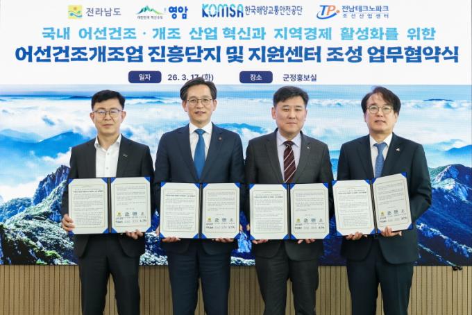[È£³²µµ¹Î½Å¹® = ÀÓÀ±Áø ±âÀÚ] ¿µ¾Ï±ºÀÌ 17ÀÏ ±ºÃ»¿¡¼­ Àü¶ó³²µµ, Çѱ¹Çؾ米Åë¾ÈÀü°ø´Ü, Àü³²Å×Å©³ëÆÄÅ©¿Í ¡®¾î¼± °ÇÁ¶¡¤°³Á¶¾÷ ÁøÈï´ÜÁö ¹× Áö¿ø¼¾ÅÍ Á¶¼º ¾÷¹«Çù¾à¡¯À» ü°áÇϰí, ¼º°ø ¿î¿µÀ» À§ÇØ »óÈ£ Çù·ÂÀ» ¾à¼ÓÇß´Ù.