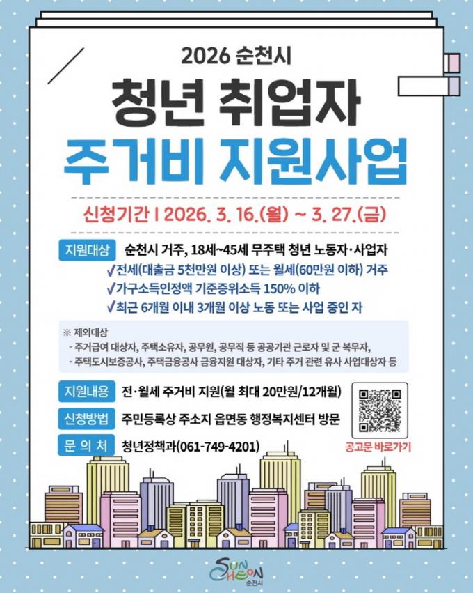 [È£³²µµ¹Î½Å¹® = ÀÓÀ±Áø ±âÀÚ] ¼øÃµ½Ã´Â ¼º½ÇÈ÷ ÀÏÇϴ û³âÀÇ ÁÖ°Å ¾ÈÁ¤°ú °æÁ¦Àû ÀÚ¸³ ±â¹Ý ¸¶·ÃÀ» À§ÇØ¡¸Ã»³â Ãë¾÷ÀÚ Áְźñ Áö¿ø»ç¾÷¡¹ ´ë»óÀÚ¸¦ ¿À´Â 27ÀϱîÁö ¸ðÁýÇÑ´Ù.