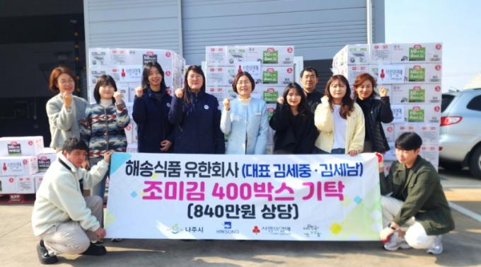 ±è¼¼Áß, ±è¼¼³² ´ëÇ¥´Â ¡°Á¶±ÝÀ̳ª¸¶ ¾î·Á¿î ÀÌ¿ôµéÀÇ ½Ä»ýȰ¿¡ µµ¿òÀÌ µÇ±æ ¹Ù¶õ´Ù¡±¸ç ¡°¾ÕÀ¸·Îµµ Áö¿ª»çȸ¿Í ÇÔ²²ÇÏ´Â ±â¾÷ÀÌ µÉ ¼ö ÀÖµµ·Ï Áö¼ÓÀûÀÎ ³ª´® Ȱµ¿À» ÀÌ¾î °¡°Ú´Ù¡±°í ¹àÇû´Ù. ³ªÁֽà °ü°èÀÚ´Â ¡°²ÙÁØÇÑ ³ª´®À» ½ÇÃµÇØ ÁÖ°í ÀÖ´Â ÇØ¼Û½Äǰ À¯ÇÑȸ»ç¿¡ ±íÀÌ °¨»çµå¸°´Ù¸ç ¡°±âÅ¹ÇØ ÁֽŠÁ¶¹Ì±èÀº µµ¿òÀÌ ÇÊ¿äÇÑ ¾ÆÀ̵é°ú ¾î¸£½Åµé¿¡°Ô Å« ÈûÀÌ µÉ °Í¡±À̶ó°í ¸»Çß´Ù.