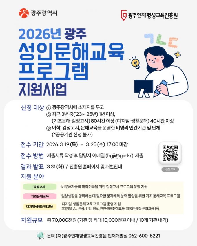 ±¤ÁÖÀÎÀçÆò»ýÁøÈï¿ø °ü°èÀÚ´Â ¡°Áö¿ª ³» ºñ¹®ÇØÀÚÀÇ ±³À° Á¢±Ù¼ºÀ» ³ôÀ̰í, µðÁöÅРȯ°æ º¯È¿¡ ´ëÀÀÇÒ ¼ö ÀÖ´Â ¹®ÇØ ¿ª·®À» °ÈÇÏ´Â µ¥ ÁßÁ¡À» µÑ °èȹ¡±À̶ó¸ç ¡°ÇöÀå ±â°üµéÀÇ Àû±ØÀûÀÎ Âü¿©¸¦ ±â´ëÇÑ´Ù¡±°í ¹àÇû´Ù.