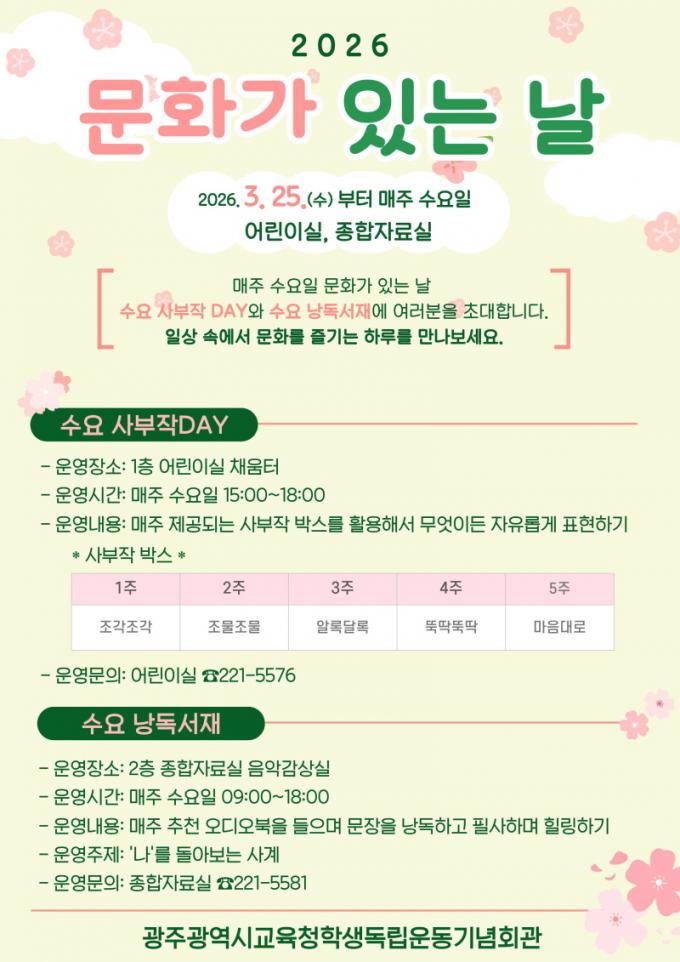 ±¤ÁÖ±¤¿ª½Ã±³À°Ã»Çлýµ¶¸³¿îµ¿±â³äȸ°ü, ¡®¹®È­°¡ ÀÖ´Â ³¯¡¯ ¿î¿µ
