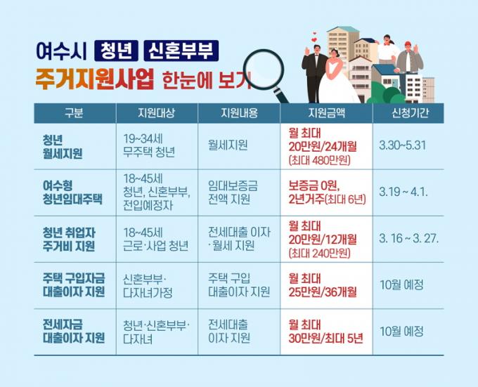 ¿©¼ö¿¡¼ 6¾ï ¿ø ÀÌÇÏ ÁÖÅÃÀ» ±¸ÀÔÇÑ ½ÅÈ¥ºÎºÎ¿Í ´ÙÀÚ³à °¡±¸¸¦ ´ë»óÀ¸·Î ½ÇÀÌÀÚ ³³ºÎ¾× ±âÁØ ¿ù ÃÖ´ë 25¸¸ ¿øÀ» 36°³¿ù°£ Áö¿øÇÑ´Ù. ½ÅÈ¥ºÎºÎ´Â ºÎºÎÇÕ»ê ¿¬¼Òµæ 8,500¸¸ ¿ø ÀÌÇÏ, ´ÙÀÚ³à °¡±¸´Â 1¾ï ¿ø ÀÌÇÏÀÌ¸é ½Åû °¡´ÉÇÏ´Ù.