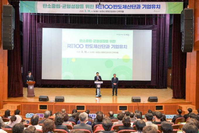 [È£³²µµ¹Î½Å¹® = ÀÓÀ±Áø ±âÀÚ] ¼øÃµ½Ã°¡ 19ÀÏ ¹®È­°Ç°­¼¾ÅÍ¿¡¼­ ¡®Åº¼ÒÁ߸³±ÕÇü¼ºÀåÀ» À§ÇÑ 「RE100 ¹ÝµµÃ¼ ±¹°¡»ê´Ü°ú ±â¾÷ À¯Ä¡ ½Ã¹Î Æ÷·³」¡¯À» ¿­°í Àü³² µ¿ºÎ±Ç RE100 ¹ÝµµÃ¼ ±¹°¡»ê´Ü À¯Ä¡ ºñÀüÀ» °øÀ¯Çß´Ù.