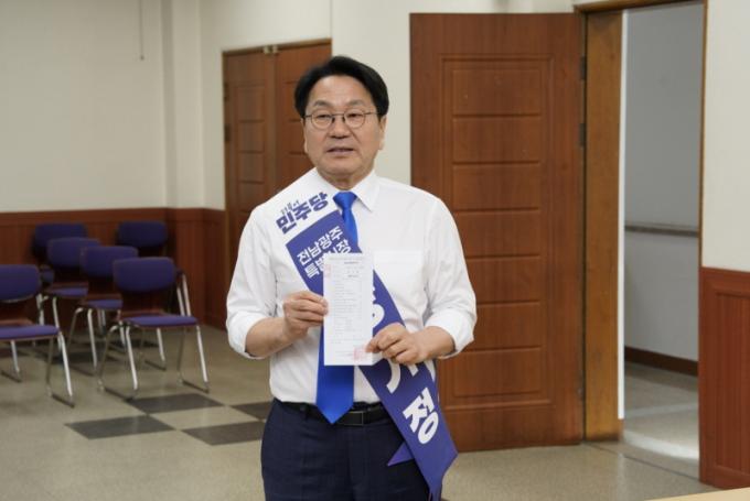 ° ½ÃÀåÀº À̳¯ ¿ÀÈÄ 4½Ã °ø½Ä ÀÏÁ¤À» ¸ðµÎ ¸¶Ä£ µÚ ±¤Áֽü±°Å°ü¸®À§¿øÈ¸¸¦ ã¾Æ ¿¹ºñÈĺ¸ µî·Ï ÀýÂ÷¸¦ ¿Ï·áÇÏ°í ´õºÒ¾î¹ÎÁÖ´ç Àü³²±¤ÁÖÅëÇÕÆ¯º°½ÃÀå Èĺ¸ °æ¼±¿¡ º»°ÝÀûÀ¸·Î ³ª¼¹´Ù.