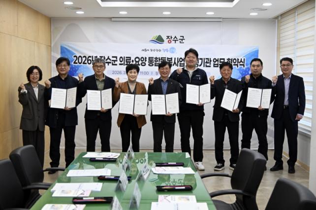 À̳¯ Çù¾à½Ä¿¡´Â ÃÖÈÆ½Ä Àå¼ö±º¼ö¸¦ ºñ·ÔÇØ Àå¼ö»ç¶ûÀçȰÁÖ°£º¸È£¼¾ÅÍ, Àå¼ö½Ã´Ï¾îŬ·´, ´õ»ç¶ûÀç°¡³ëÀκ¹Áö¼¾ÅÍ, ¹é¼¼µ¿¾ÈÀç°¡³ëÀκ¹Áö¼¾ÅÍ, ¹Ð¾Ë³ëÀκ¹Áö¼¾ÅÍ, Àå¼öÁö¿ªÀÚȰ¼¾ÅÍ, ¹Ì¼º°ÇÃà, ±×¸°ÀÇ·á±â 8°³ ±â°üÀåÀÌ Âü¿©ÇÑ °¡¿îµ¥ ÁøÇàµÆ´Ù.